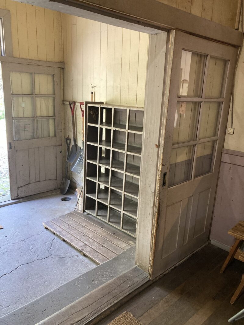 以前は学校だったという建物のエントランス。木を使った下駄箱が懐かしさを感じさせます。