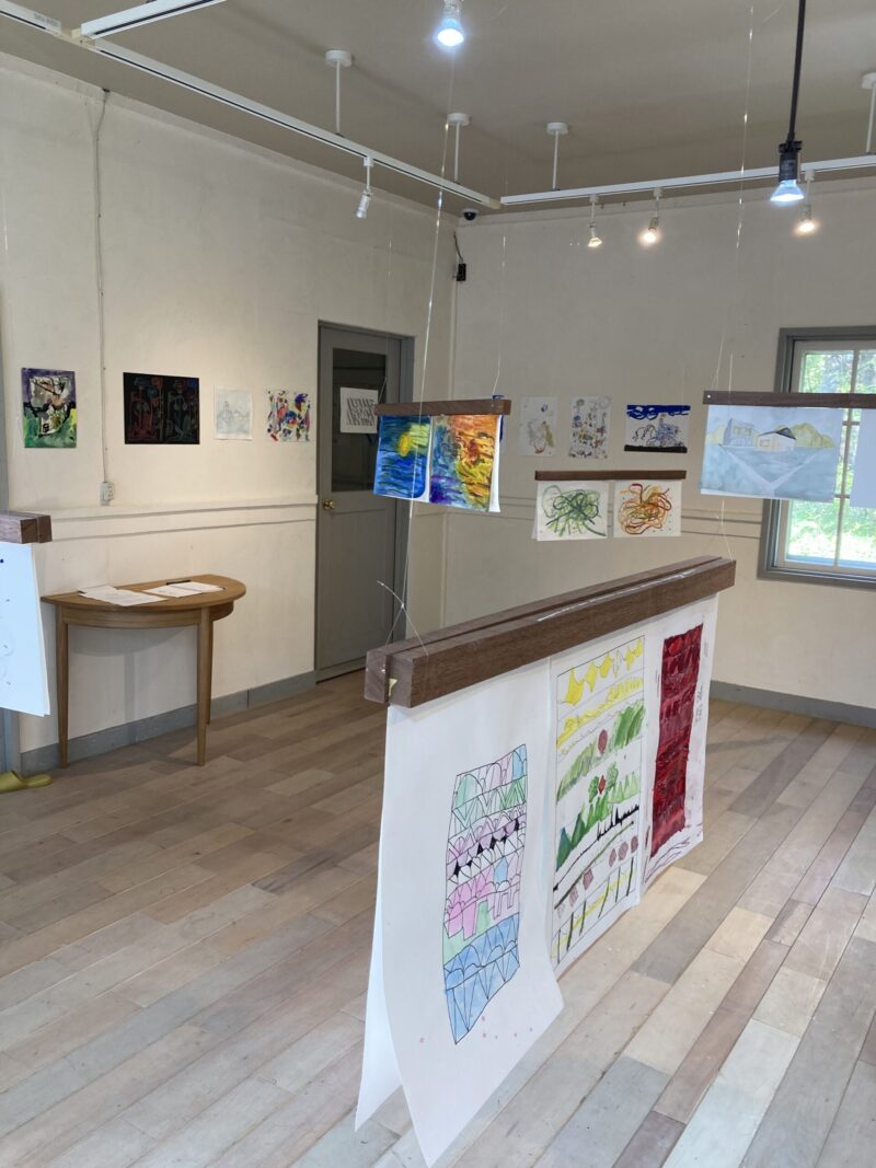 今回の展覧会では、遠軽町丸瀬布と東川町の2拠点で開催されている幼稚園から中学生までの生徒さんたちが作成した数年にわたる作品約80点が展示されていました。